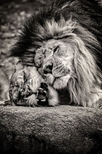 Buying a Zoo membership may not sound like a photography tip but it really is for several reasons. To get good images you are going to have to go frequently to capture compelling animal behavior. The two images below are examples of catching interesting behavior. The big cats, like our house cats, spend most of their day sleeping. Catching them engaging in some thing other than laying around is a matter of luck.